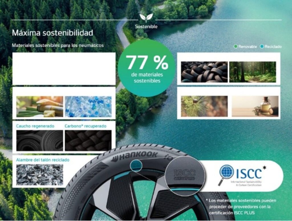 - Llantas producidas en Hungría con 45% de materiales sostenibles y certificación ISCC PLUS.